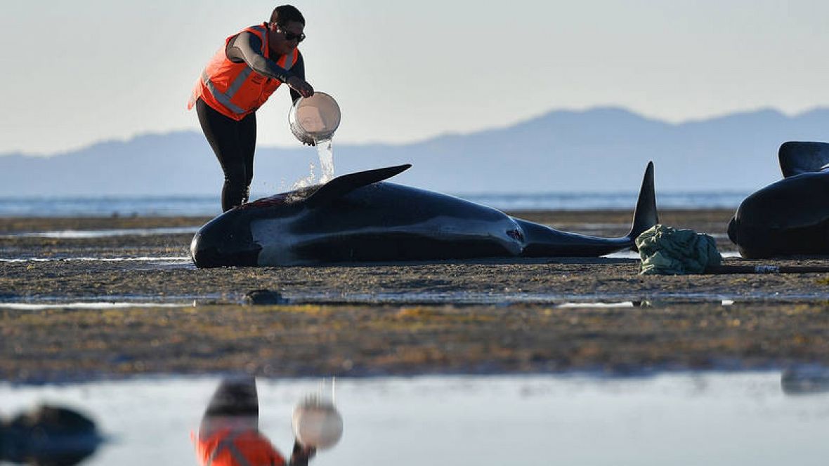 Trescientas ballenas murieron pero un grupo numeroso de voluntarios consiguieron reflotar al centenar restante en una operación de salvamento para lo que formaron una cadena humana.