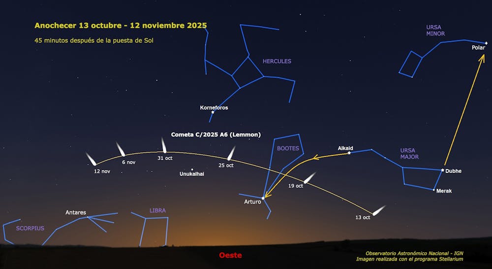 El día 21 de octubre será el mejor para observar, después del anochecer, al cometa Lemmon, y será la única vez en la vida en la que podamos hacerlo